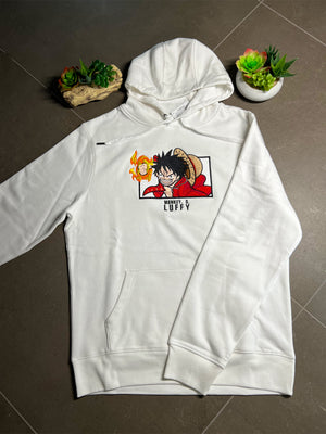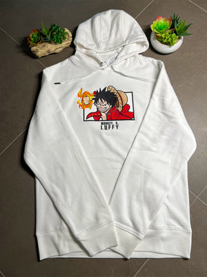 Scopri questa felpa bianca esclusiva con cappuccio, pensata per veri fan di One Piece!