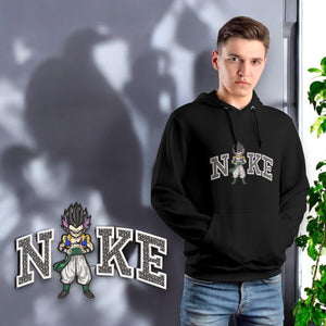 Unisci lo spirito giocoso e l'energia esplosiva di Gotenks con il design sportivo di Nike nella nostra "Gotenks Nike Hoodie". Questa felpa con cappuccio presenta un ricamo dettagliato di Gotenks, il risultato della fusione tra Goten e Trunks in "Dragon Ball Z". Perfetta per i fan dell'anime che apprezzano uno stile dinamico e sportivo nella loro moda quotidiana.
