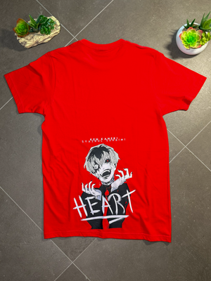 Scopri la nostra esclusiva maglietta ispirata a Ken Kaneki di Tokyo Ghoul, con una potente stampa “HEART” sul retro che rappresenta la forza e il tormento interiore del protagonista.