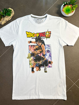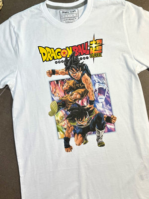 Porta l’energia di Dragon Ball Super nel tuo outfit quotidiano con questa maglietta bianca esclusiva con Goku e Bardock in azione! La stampa a colori vividi raffigura momenti iconici della saga, rendendola un capo imperdibile per ogni vero fan.