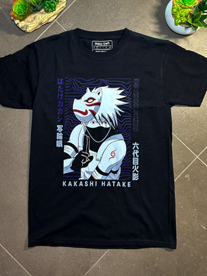 🔺 Celebra uno dei personaggi più iconici di Naruto Shippuden con questa spettacolare maglietta nera dedicata a Kakashi Hatake, il Sesto Hokage, in versione Anbu!