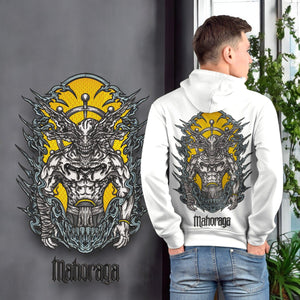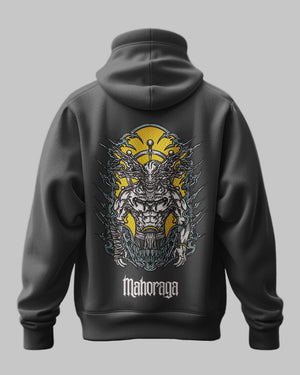 Porta il mistero e la potenza di Mahoraga nel tuo guardaroba con la nostra "Mahoraga Jujutsu Kaisen Extra Grande Hoodie". Questa felpa con cappuccio è caratterizzata da un ricamo imponente e dettagliato del temibile Mahoraga, una delle figure più enigmatiche e potenti dell'universo di "Jujutsu Kaisen".