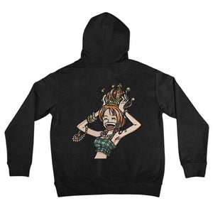 Naviga le onde con stile con la nostra "Nami Hoodie"! Questa felpa con cappuccio è dedicata alla navigatrice dell'equipaggio di Cappello di Paglia, Nami, e presenta un ricamo colorato e dettagliato che cattura il suo spirito avventuroso e la sua astuzia.