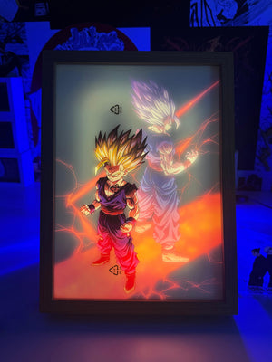 Accendi la tua passione per Dragon Ball con questo straordinario quadro LED light painting di Gohan Super Saiyan!