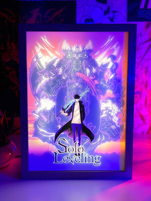 Entra nel mondo di Solo Leveling e lascia che la tua stanza si trasformi in un vero scenario epico con questo quadro LED light painting di Sung Jin-Woo!