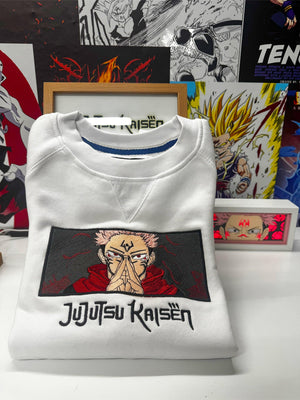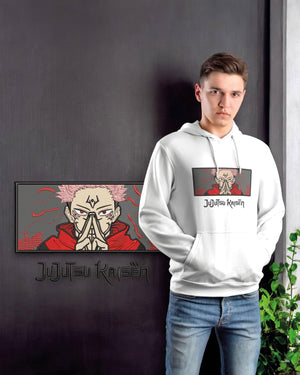 Esibisci il potere oscuro e affascinante di Sukuna con la nostra "Sukuna Espansione di Dominio Hoodie". Questa felpa con cappuccio è decorata con un ricamo intricato che rappresenta la temibile tecnica di espansione del dominio di Sukuna, una delle scene più iconiche di "Jujutsu Kaisen". Perfetta per i fan che desiderano portare un pezzo dell'azione e del misticismo dell'anime nella loro vita quotidiana.