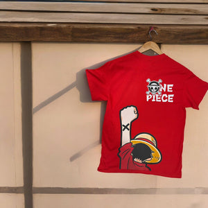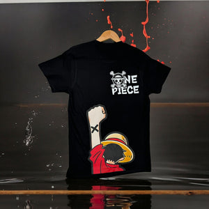 T-shirt con stampa di One Piece. Sul davanti, lato cuore, è presente una stampa di alta qualità di One Piece. Sul retro, la maglietta raffigura Luffy con il pugno alzato. La T-shirt è disponibile a 11,99 euro. Ideale per tutti gli appassionati dell'anime e del manga One Piece. Perfetta per un look casual ma unico!