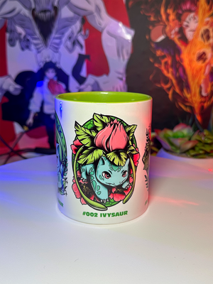 La Tazza Evoluzione Bulbasaur celebra una delle linee evolutive più amate della prima generazione: Bulbasaur, Ivysaur e Venusaur, illustrati in uno stile anime fresco, brillante e super dettagliato.