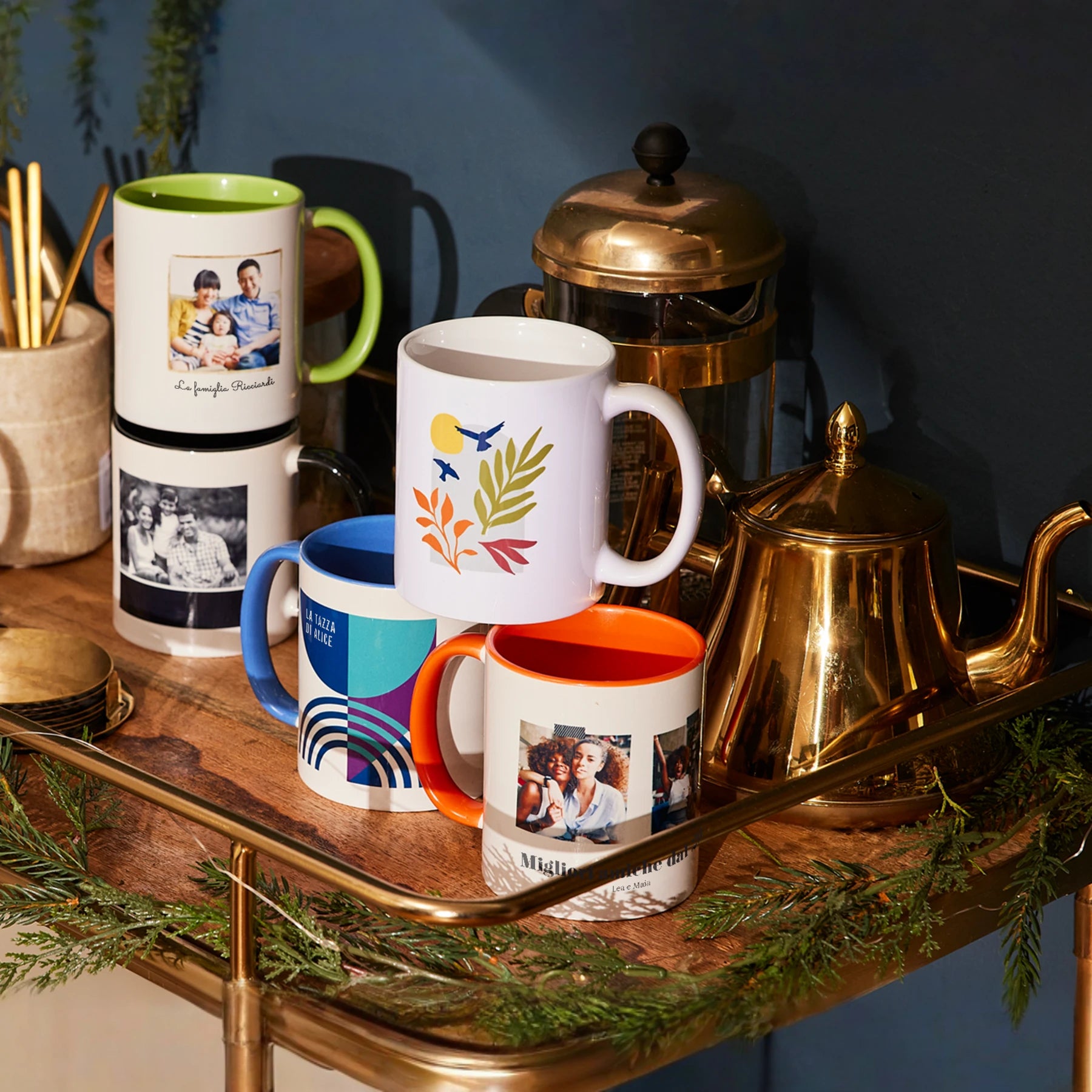 Regala una tazza di Natale personalizzata o crea un design divertente per un amico: una frase iconica, una foto buffa, il nome del cantante preferito…